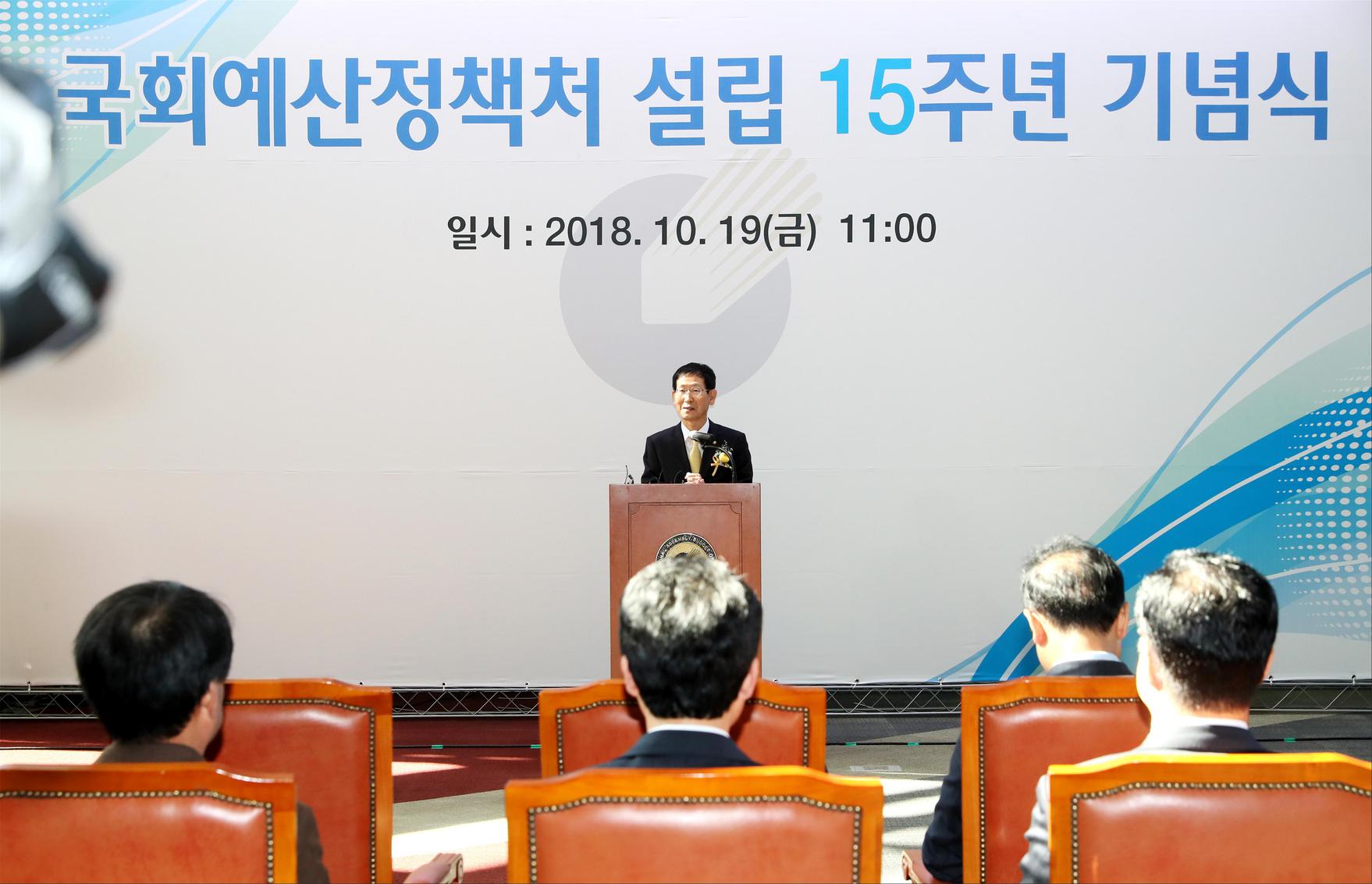 국회예산정책처(처장 김춘순)는 설립 15주년을 맞아 10월 19일(금) 오전 11시 국회의정관 3층 중앙홀에서 기념식을 개최했습니다. 이번 기념식에는 문희상 국회의장, 더불어민주당 홍영표 원내대표, 바른미래당 김관영 원내대표 등 내·외빈과 180여명의 직원이 참석했습니다.