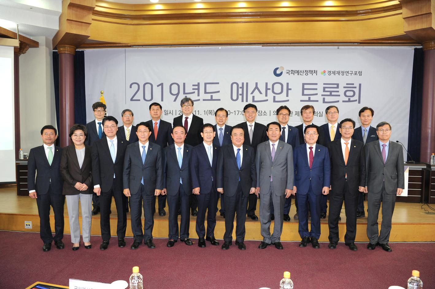 국회예산정책처(처장 김춘순)는 국회 경제재정연구포럼(공동대표 김광림·장병완 의원)과 공동으로 11월 1일(목) 오후 3시 의원회관 제1소회의실에서 「2019년도 예산안 토론회」를 개최했습니다.