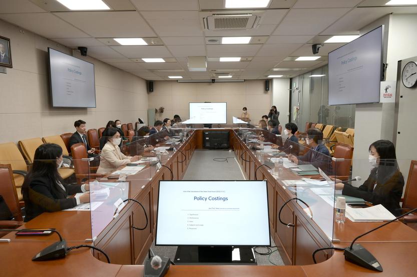 이어서 몽골 대표단과 국회예산정책처 면담팀은 한국의 법안 비용추계, 예산안 분석과 집행 평가・모니터링 등에 대해 심도 있는 발표와 질의・응답 시간을 가졌습니다. 국회예산정책처에서는 김애선 사회행정사업평가과장, 윤주철・태정림 추계세제분석관, 황종률 경제분석관 등이 면담에 참여했습니다.
