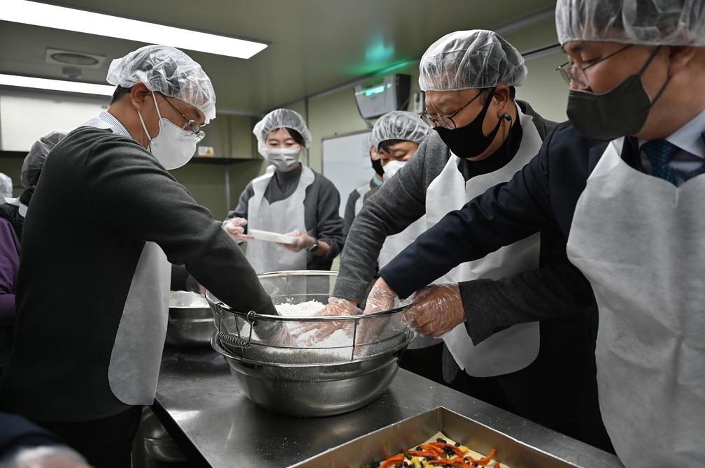 조의섭 처장과 직원 40여명은 12월 21일(수) 사회복지법인 서울삼성원(서울 동작구 소재)을 방문하여 애로사항을 청취하고, 법인 산하 장애인보호작업장인 “삼성떡프린스”에 격려금과 격려물품을 전달하는 한편, 장애인 근로자들과 함께 직접 떡을 만들어 인근 아동·노인복지시설에 제공하는 봉사활동을 실시했습니다.