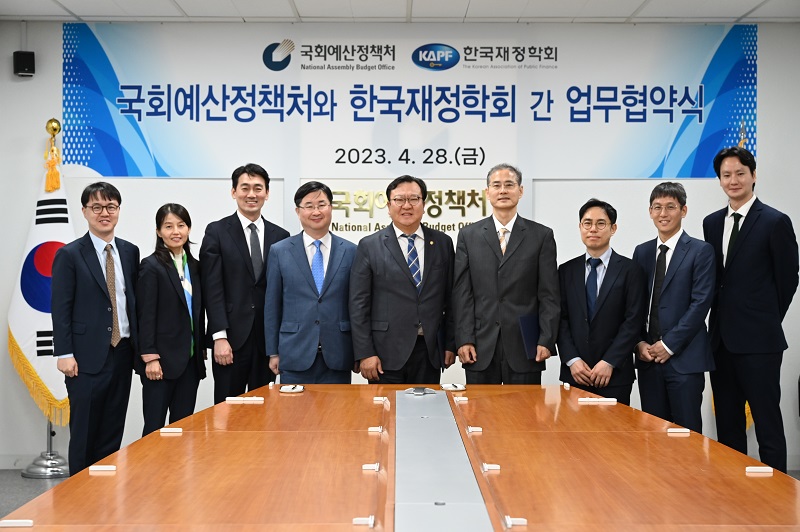 국회예산정책처(처장 조의섭)는 4월 28일(금) 국회 의정관에서 한국재정학회(학회장 이철인)와 업무협약을 체결했습니다.