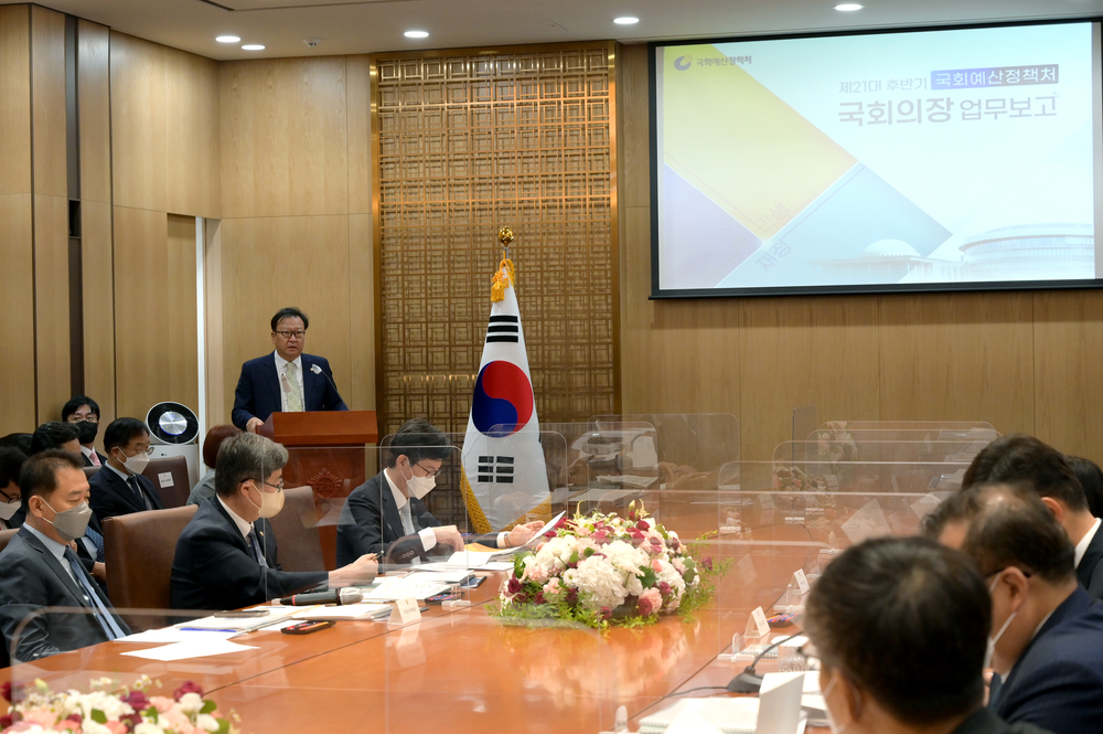 국회예산정책처(처장 조의섭)는 제21대 후반기 국회를 맞이하여 2022년 8월 25일(목) 국회 접견실에서 국회의장 업무보고를 실시하였습니다.