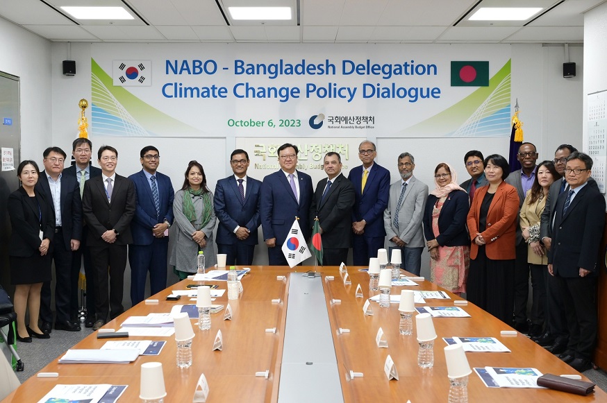 세이버 초우드후리 단장은 국회예산정책처와의 만남을 통해 한국의 기후변화 환경 제도와 예산 현황을 듣게 되어 유익한 시간이었다고 했으며, 특히 파리협정과 관련하여 한국이 국제감축으로 37.5백만톤을 감축해야 하고 방글라데시도 61.9백만톤을 국제협력으로 감축해야 하는 만큼 향후 두 나라의 온실가스 감축 협력사업이 활발히 진행되기를 희망한다고 밝혔습니다.