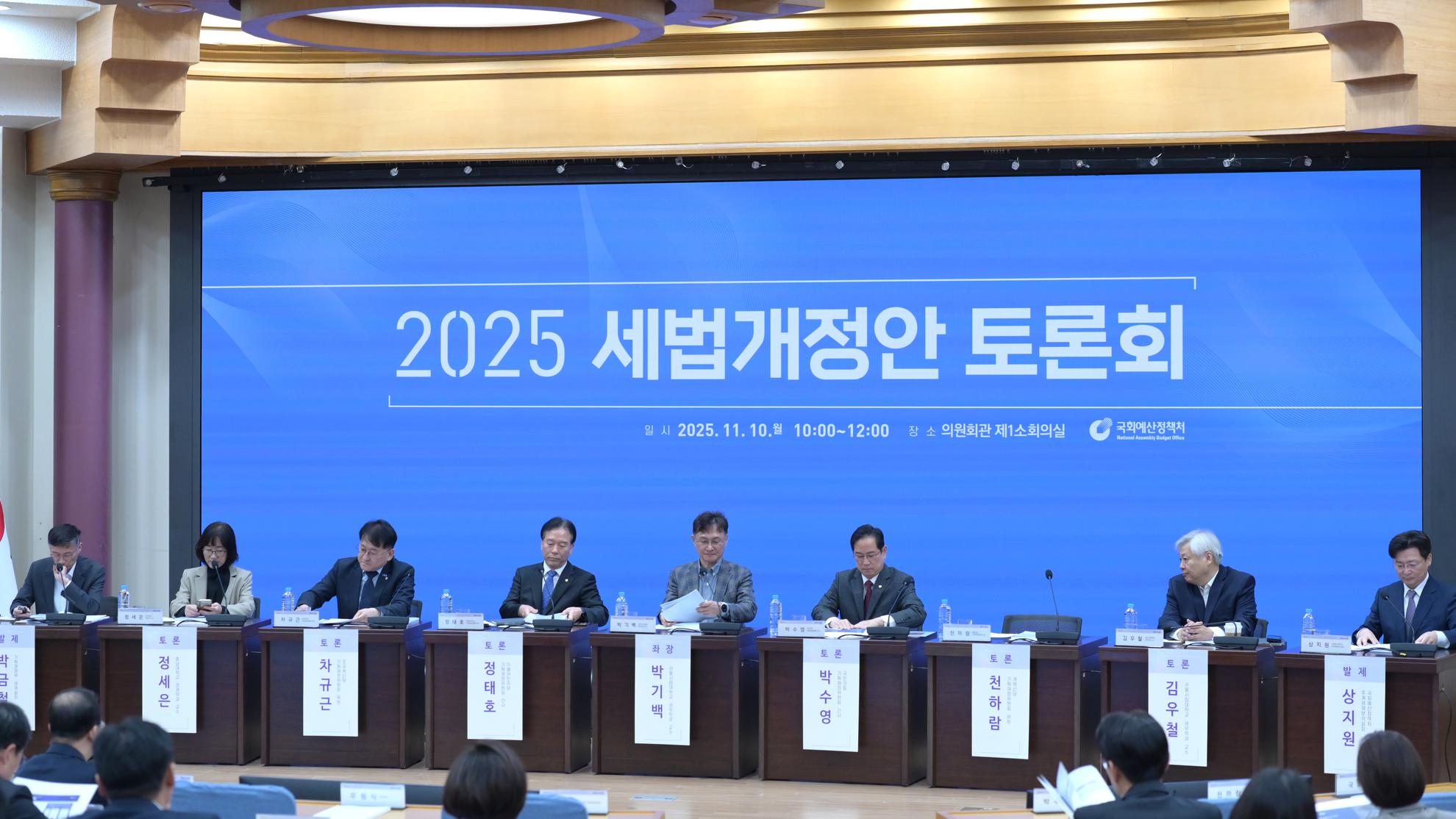 국회예산정책처는 11월 10일(월) 오전 10시 국회 의원회관 제1소회의실에서 「2025년 세법개정안 토론회」를 개최하여 세법개정안에 대한 주요 현안과 개선과제를 논의하였습니다.