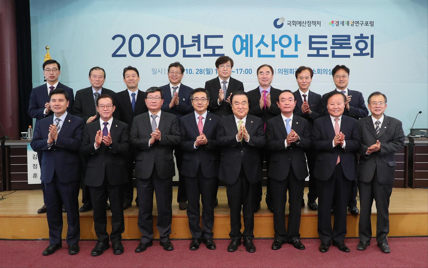 국회예산정책처(처장이종후)는 국회경제재정연구포럼(공동대표 김광림․장병완의원)과 공동으로 10월 28일(월) 오후 3시 의원회관 제1소회의실에서 「2020년도 예산안 토론회」를 개최하여, 정부가 제출한 예산안에 대한 국회 심사의 주요 원칙과 방향을 모색하였습니다.