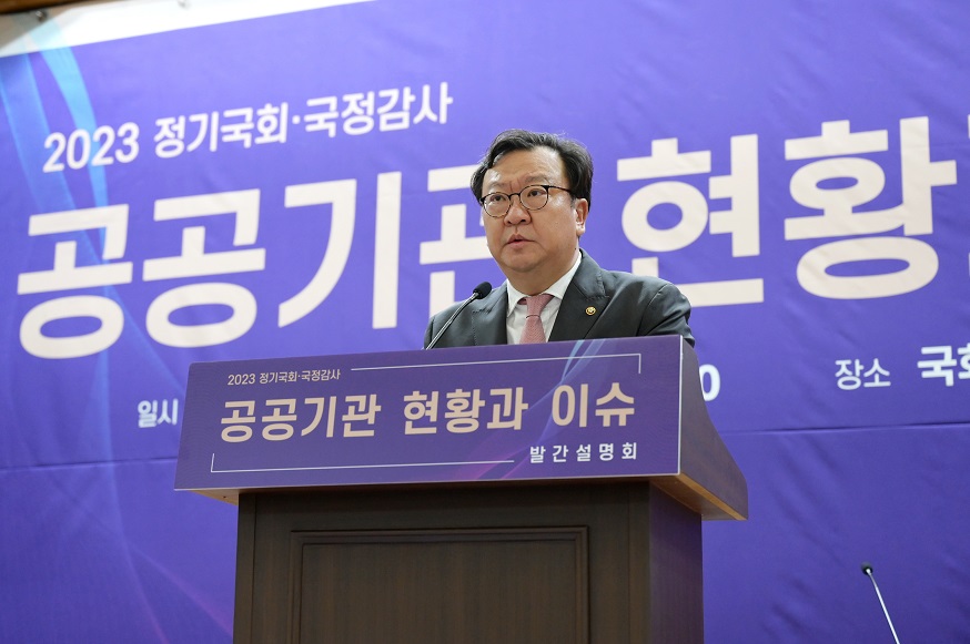 국회예산정책처는 9월 14일(목) 오전 10시 국회 의원회관 제1소회의실에서 「2023 공공기관 현황과 이슈」 발간 설명회를 개최하여 공공기관에 대한 현황과 주요 이슈를 소개하였습니다.